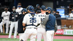 [OSEN=고척, 곽영래 기자] 17일 오후 서울 고척스카이돔에서 '2020 신한은행 SOL KBO리그' 한국시리즈 NC 다이노스와 두산 베어스의 경기가 열렸다.6회초 1사 1,2루 NC 나성범과 알테어가 두산 박세혁이 적시타를 놓치고 있다. /youngrae@ose
