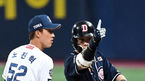 [OSEN=고척, 이대선 기자] 17일 오후 서울 고척스카이돔에서 '2020 신한은행 SOL KBO리그' 한국시리즈 1차전 NC 다이노스와 두산 베어스의 경기가 열렸다.6회초 1사 1,2루에서 두산 박세혁이 적시 2루타를 치고 환호하고 있다. /sunday@osen.