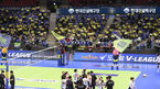 [OSEN=수원, 민경훈 기자] 17일 오후 수원 실내체육관에서 도드람 2020-2021 V리그 프로배구 여자부 현대건설과 IBK기업은행의 경기가 진행됐다.거리두기 1.5단계 격상을 앞두고 배구 팬들이 열띤 응원을 펼치고 있다./ rumi@osen.co.kr