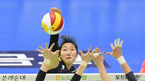 [OSEN=수원, 민경훈 기자] 17일 오후 수원 실내체육관에서 도드람 2020-2021 V리그 프로배구 여자부 현대건설과 IBK기업은행의 경기가 진행됐다.1세트 IBK기업은행 김주향의 강타를 현대건설 루소가 블로킹하고 있다./ rumi@osen.co.kr