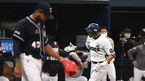 [OSEN=박준형 기자] 17일 오후 서울 고척스카이돔에서 ‘2020 신한은행 SOL KBO리그’ 한국시리즈 1차전 NC 다이노스와 두산 베어스의 경기가 열렸다.4회말 1사 1,2루 NC 알테어가 3점 홈런을 날리고 동료들의 축하를 받고 있다. / s