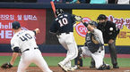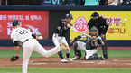 [OSEN=고척, 곽영래 기자] 17일 오후 서울 고척스카이돔에서 '2020 신한은행 SOL KBO리그' 한국시리즈 NC 다이노스와 두산 베어스의 경기가 열렸다.5회초 무사 두산 박세혁이 NC 루친스키의 공에 맞고 있다. /youngrae@osen.co.kr