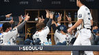 [OSEN=고척, 곽영래 기자] 17일 오후 서울 고척스카이돔에서 '2020 신한은행 SOL KBO리그' 한국시리즈 NC 다이노스와 두산 베어스의 경기가 열렸다.1회말 1사 1루 NC 선수단이 양의지의 안타를 세레머니를 하고 있다. /youngrae@osen.co.kr