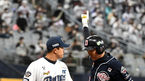 [OSEN=고척, 곽영래 기자] 17일 오후 서울 고척스카이돔에서 '2020 신한은행 SOL KBO리그' 한국시리즈 NC 다이노스와 두산 베어스의 경기가 열렸다.1회말 1사 3루 두산 알칸타라가 NC 나성범에게 적시타를 허용한 뒤 아쉬워하고 있다. /y