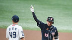 [OSEN=박준형 기자] 17일 오후 서울 고척스카이돔에서 ‘2020 신한은행 SOL KBO리그’ 한국시리즈 1차전 NC 다이노스와 두산 베어스의 경기가 열렸다.2회초 두산 선두타자 안타를 날리고 세리머니를 하고 있다. / soul1014@osen.co.kr