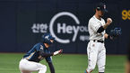 [OSEN=고척, 지형준 기자] 20일 오후 서울 고척스카이돔에서 ‘2020 신한은행 SOL KBO리그’ 포스트시즌 한국시리즈 3차전 두산 베어스와 NC 다이노스의 경기가 열렸다.8회초 무사 1루에서 NC 이재율이 두산 오재원에 태그아웃