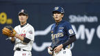 [OSEN=고척,박준형 기자]20일 오후 서울 고척스카이돔에서 ‘2020 신한은행 SOL KBO리그’ 포스트시즌 한국시리즈 3차전 두산 베어스와 NC 다이노스의 경기가 열렸다.8회초 무사 1루 NC 알테어의 타석때 오재원 2루수가 1루 대주