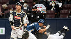 [OSEN=고척, 최규한 기자] 20일 오후 서울 고척스카이돔에서 ‘2020 신한은행 SOL KBO리그’ 포스트시즌 한국시리즈 3차전 두산 베어스와 NC 다이노스의 경기가 열렸다.3회초 2사 3루 상황 NC 양의지 타석 때 3루 주자 박민우가 두