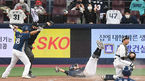 [OSEN=고척, 지형준 기자] 20일 오후 서울 고척스카이돔에서 ‘2020 신한은행 SOL KBO리그’ 포스트시즌 한국시리즈 3차전 두산 베어스와 NC 다이노스의 경기가 열렸다.3회초 2사 3루에서 두산 최원준이 박세혁의 포일로 실점하