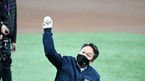 [OSEN=고척, 지형준 기자] 20일 오후 서울 고척스카이돔에서 ‘2020 신한은행 SOL KBO리그’ 포스트시즌 한국시리즈 3차전 두산 베어스와 NC 다이노스의 경기가 열렸다.경기에 앞서 진옥동 신한은행장이 시구를 하고 있다. /jpnews