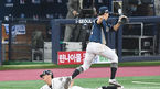 [OSEN=고척,박준형 기자]20일 오후 서울 고척스카이돔에서 ‘2020 신한은행 SOL KBO리그’ 포스트시즌 한국시리즈 3차전 두산 베어스와 NC 다이노스의 경기가 열렸다.4회초 2사 만루 NC 나성범의 역전 2타점 적시타때 2루 주자 박