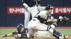 [OSEN=고척, 최규한 기자] 20일 오후 서울 고척스카이돔에서 ‘2020 신한은행 SOL KBO리그’ 포스트시즌 한국시리즈 3차전 두산 베어스와 NC 다이노스의 경기가 열렸다.4회초 2사 만루 상황 NC 나성범의 역전 2타점 적시타 때 홈을