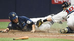 [OSEN=고척, 곽영래 기자] 20일 오후 서울 고척스카이돔에서 '2020 신한은행 SOL KBO리그' 한국시리즈 3차전 두산 베어스와 NC 다이노스의 경기가 열렸다.4회초 2사 만루 NC 박민우가 나성범의 안타때 득점을 올리고 있다. /youngrae@osen.co.k
