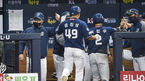 [OSEN=고척, 곽영래 기자] 20일 오후 서울 고척스카이돔에서 '2020 신한은행 SOL KBO리그' 한국시리즈 3차전 두산 베어스와 NC 다이노스의 경기가 열렸다.4회초 2사 만루 NC 박민우, 강진성이 나성범의 안타때 득점을 올린 뒤 양의지와