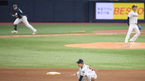 [OSEN=고척, 지형준 기자] 20일 오후 서울 고척스카이돔에서 ‘2020 신한은행 SOL KBO리그’ 포스트시즌 한국시리즈 3차전 두산 베어스와 NC 다이노스의 경기가 열렸다.3회초 2사 3루에서 NC 박민우가 두산 최원준의 폭투에 홈을
