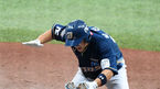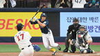 [OSEN=고척,박준형 기자]20일 오후 서울 고척스카이돔에서 ‘2020 신한은행 SOL KBO리그’ 포스트시즌 한국시리즈 3차전 두산 베어스와 NC 다이노스의 경기가 열렸다.4회초 2사 만루 NC 나성범의 역전 2타점 적시타때 이동욱 감