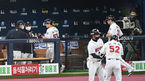[OSEN=고척, 지형준 기자] 20일 오후 서울 고척스카이돔에서 ‘2020 신한은행 SOL KBO리그’ 포스트시즌 한국시리즈 3차전 두산 베어스와 NC 다이노스의 경기가 열렸다.3회말 무사 2,3루에서 NC 라이트가 마운드를 내려가고 있다.