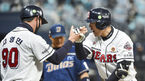 [OSEN=고척, 곽영래 기자] 20일 오후 서울 고척스카이돔에서 '2020 신한은행 SOL KBO리그' 한국시리즈 3차전 두산 베어스와 NC 다이노스의 경기가 열렸다.3회말 1사 2,3루 두산 최주환과 김재환이 김재호의 적시타로 득점을 올린 뒤 기뻐