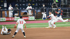 [OSEN=고척, 곽영래 기자] 20일 오후 서울 고척스카이돔에서 '2020 신한은행 SOL KBO리그' 한국시리즈 3차전 두산 베어스와 NC 다이노스의 경기가 열렸다.4회초 무사 두산 오재일이 NC 노진혁의 타구를 잡으려다 놓치고 있다. /youngrae@osen