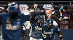 [OSEN=고척, 곽영래 기자] 20일 오후 서울 고척스카이돔에서 '2020 신한은행 SOL KBO리그' 한국시리즈 3차전 두산 베어스와 NC 다이노스의 경기가 열렸다.3회초 2사 3루 NC 박민우가 두산 최원준의 폭투를 틈타 득점을 올린 뒤 기뻐하고