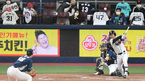 [OSEN=고척, 최규한 기자] 20일 오후 서울 고척스카이돔에서 ‘2020 신한은행 SOL KBO리그’ 포스트시즌 한국시리즈 3차전 두산 베어스와 NC 다이노스의 경기가 열렸다.3회초 2사 3루 상황 NC 양의지 타석 때 3루 주자 박민우가 두