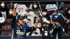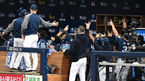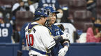 [OSEN=고척, 곽영래 기자] 20일 오후 서울 고척스카이돔에서 '2020 신한은행 SOL KBO리그' 한국시리즈 3차전 두산 베어스와 NC 다이노스의 경기가 열렸다.3회말 무사 3루 두산 정수빈이 최주환의 내야 안타로 득점을 올린 뒤 동료들과