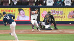 [OSEN=고척, 최규한 기자] 20일 오후 서울 고척스카이돔에서 ‘2020 신한은행 SOL KBO리그’ 포스트시즌 한국시리즈 3차전 두산 베어스와 NC 다이노스의 경기가 열렸다.3회초 2사 3루 상황 NC 양의지 타석 때 3루 주자 박민우가 두