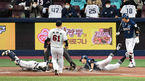 [OSEN=고척,박준형 기자]20일 오후 서울 고척스카이돔에서 ‘2020 신한은행 SOL KBO리그’ 포스트시즌 한국시리즈 3차전 두산 베어스와 NC 다이노스의 경기가 열렸다.2회말 2사 3루 NC 양의지의 타석 폭투때 3루 주자 박민우가 홈