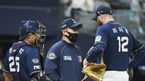 [OSEN=고척,박준형 기자]20일 오후 서울 고척스카이돔에서 ‘2020 신한은행 SOL KBO리그’ 포스트시즌 한국시리즈 3차전 두산 베어스와 NC 다이노스의 경기가 열렸다.2회말 무사 2,3루 NC 이동욱 감독이 마운드에 올라 선발투수