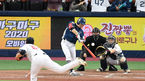 [OSEN=고척,박준형 기자]20일 오후 서울 고척스카이돔에서 ‘2020 신한은행 SOL KBO리그’ 포스트시즌 한국시리즈 3차전 두산 베어스와 NC 다이노스의 경기가 열렸다.2회말 무사 2,3루 두산 박건우의 역전 희생타때 3루 주자 김
