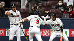 [OSEN=고척, 곽영래 기자] 20일 오후 서울 고척스카이돔에서 '2020 신한은행 SOL KBO리그' 한국시리즈 3차전 두산 베어스와 NC 다이노스의 경기가 열렸다.2회말 무사 두산 페르난데스가 솔로 홈런을 때린 뒤 동료들과 기뻐하고 있다. /yo