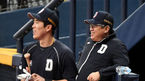 [OSEN=고척, 최규한 기자] 20일 오후 서울 고척스카이돔에서 ‘2020 신한은행 SOL KBO리그’ 포스트시즌 한국시리즈 3차전 두산 베어스와 NC 다이노스의 경기가 열린다.경기를 앞두고 두산 김태형 감독과 허경민이 훈련 중 미소