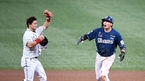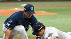 [OSEN=고척, 지형준 기자] 21일 오후 서울 고척스카이돔에서 ‘2020 신한은행 SOL KBO리그’ 포스트시즌 한국시리즈 4차전 두산 베어스와 NC 다이노스의 경기가 열렸다.4회초 무사에서 NC 나성범이 두산 최주환에 태그당하며 2루