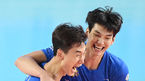 [OSEN=대전, 민경훈 기자] 22일 오후 대전 충무체육관에서 도드람 2020-2021 V리그 프로배구 남자부 삼성화재와 한국전력의 경기가 진행됐다.2세트 공격에 성공한 한국전력 선수들이 포옹을 하고 있다./ rumi@osen.co.kr