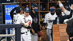 [OSEN=고척, 이대선 기자] 23일 오후 서울 고척스카이돔에서 '2020 신한은행 SOL KBO리그' 한국시리즈 5차전 NC 다이노스와 두산 베어스의 경기가 열렸다.6회말 1사 1루에서 NC 양의지가 중월 투런 홈런을 치고 동료들의 축하를 받고 있