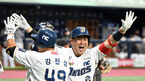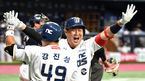 [OSEN=고척,박준형 기자]23일 서울 고척스카이돔에서 2020시즌 KBO리그 한국시리즈 5차전 NC 다이노스와 두산 베어스의 경기가 진행됐다.6회말 1사 NC 나성범이 안타를 날리고 세리머니를 하고 있다. / soul1014@osen.co.kr