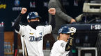[OSEN=고척,박준형 기자] 24일 오후 서울 고척스카이돔에서 ‘2020 신한은행 SOL KBO리그’ 포스트시즌 한국시리즈 6차전 NC 다이노스와 두산 베어스의 경기가 열렸다.5회말 2사 1,2루 NC 이명기의 선취 1타점 적시타때 홈을 밟은