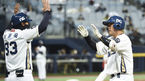 [OSEN=고척, 이대선 기자] 24일 오후 서울 고척스카이돔에서 '2020 신한은행 SOL KBO리그' 한국시리즈 6차전 NC 다이노스와 두산 베어스의 경기가 열렸다.6회말 1사 2루에서 NC 박석민의 적시타 때 홈을 밟은 2루주자 알테어가 동료들의