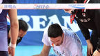 [OSEN=인천, 조은정 기자] 24일 오후 인천 계양체육관에서 도드람 2020∼2021 V리그 대한항공과 우리카드의 경기가 열렸다.3세트 우리카드 알렉스가 부상을 입은 나경복을 살피고 있다. /cej@osen.co.kr