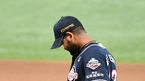 [OSEN=고척, 이대선 기자] 24일 오후 서울 고척스카이돔에서 '2020 신한은행 SOL KBO리그' 한국시리즈 6차전 NC 다이노스와 두산 베어스의 경기가 열렸다.5회말 2사 1,2루에서 NC 이명기에게 우전 적시타를 허용한 알칸타라가 아쉬워하고