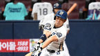 [OSEN=고척, 이대선 기자] 24일 오후 서울 고척스카이돔에서 '2020 신한은행 SOL KBO리그' 한국시리즈 6차전 NC 다이노스와 두산 베어스의 경기가 열렸다.5회말 2사 1,2루에서 NC 이명기의 적시타 때 홈을 밟은 2루주자 권희동이 이동욱