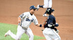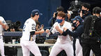 [OSEN=고척, 지형준 기자] 24일 오후 서울 고척스카이돔에서 ‘2020 신한은행 SOL KBO리그’ 포스트시즌 한국시리즈 6차전 NC 다이노스와 두산 베어스의 경기가 열렸다.5회초 무사에서 두산 정수빈이 우전안타를 날리고 기뻐하