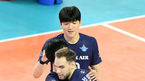 [OSEN=인천, 조은정 기자] 24일 오후 인천 계양체육관에서 도드람 2020∼2021 V리그 대한항공과 우리카드의 경기가 열렸다.1세트 대한항공 곽승석, 비예나가 득점을 올린 뒤 기뻐하고 있다. /cej@osen.co.kr