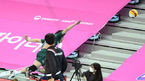 [OSEN=인천, 조은정 기자] 24일 오후 인천 계양체육관에서 도드람 2020∼2021 V리그 대한항공과 우리카드의 경기가 열렸다.1세트 대한항공 오은렬이 공을 살리기 위해 전광판을 넘어가다 넘어지며 쓰러졌다. /cej@osen.co.kr