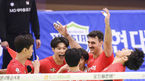 [OSEN=수원,박준형 기자] 26일 오후 경기도 수원시 수원실내체육관에서 ‘도드람 2020-2021 V-리그’ 한국전력과 OK금융그룹의 경기가 진행됐다.2세트 한국전력 러셀이 득점 성공뒤 동료들과 기뻐하고 있다./ soul1014@osen.co.kr