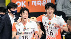 [OSEN=안산, 조은정 기자] 26일오후 경기도 안산시 상록수체육관에서 ‘도드람 2020-2021 V리그’ OK금융그룹과 KB손해보험의 경기가 열렸다.2세트 OK금융그룹 최홍석이 득점에 기뻐하고 있다. /cej@osen.co.kr