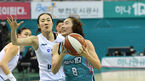 [OSEN=부천, 최규한 기자] 28일 오후 경기도 부천실내체육관에서 ‘KB국민은행 Liiv M 2020-2021 여자프로농구' 부천 하나원큐와 아산 우리은행의 경기가 열렸다.2쿼터, 하나원큐 백지은이 슛을 시도할 때 우리은행 홍보람이 파울을