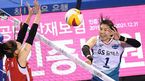 [OSEN=화성, 곽영래 기자] 30일 오후 경기도 화성종합경기타운 실내체육관에서 '도드람 2020-2021 V리그' V-리그 여자부 IBK기업은행과 GS칼텍스의 경기가 열렸다.3세트 기업은행 김주향이 스파이크를 때리고 있다. /youngrae@osen.co.kr