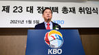 [OSEN=사진팀] KBO 정지택 신임 총재 취임식이 5일 오전 서울 도곡동 야구회관에서 열렸다.정지택 신임 총재는 이날 취임 소감과 함께 업무 추진계획에 관한 기자와 질의 응답을 시작으로 본격적인 행보에 들어갔다.사진=사진공동