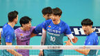 [OSEN=장충, 민경훈 기자] 7일 오후 서울 장충체육관에서 도드람 2020-2021 V리그 프로배구 남자부 우리카드와 OK금융그룹의 경기가 진행됐다.1세트 우리카드 나경복이 공격에 성공한 후 동료들과 기쁨을 나누고 있다./ rumi@osen.co.kr